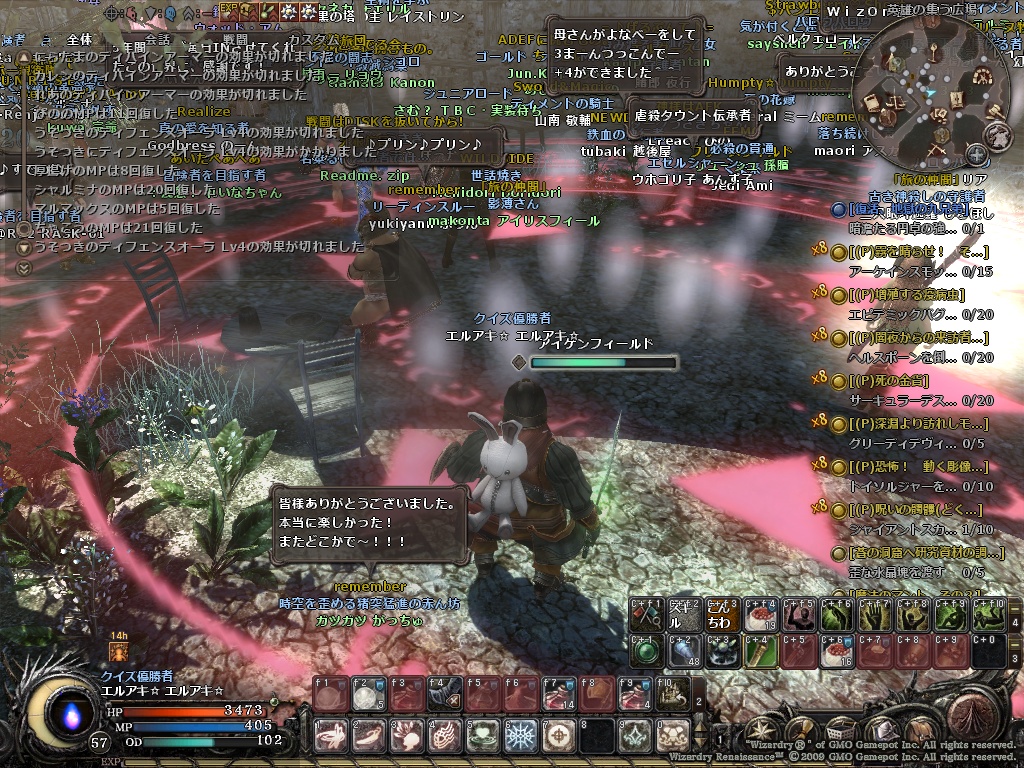 ほどなくして、敵を倒すことに成功し、町は平安を取り戻します。最後ということで・・・倒しても今回は特に何もなしw まあ、最後の思い出作りということで運営さんがモンスターを出してくれたみたいです。もっとスムーズに動けたら楽しかっただろうなぁ。