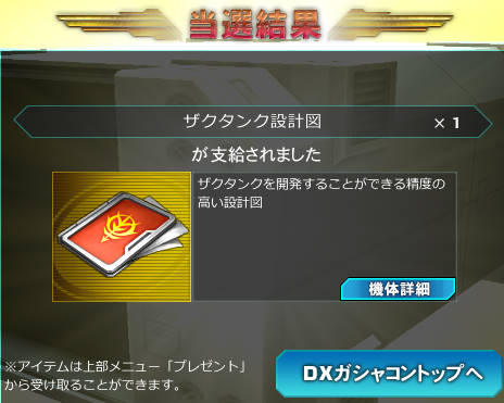 3000円だして11連ガシャやって、やっとドムが1体出るかどうかみたいです。(そのほかザクIなどの設計図も手に入りますが・・・)ちまちまやっていたのでは、いつまでたっても出ませんね(;´Д`A ```