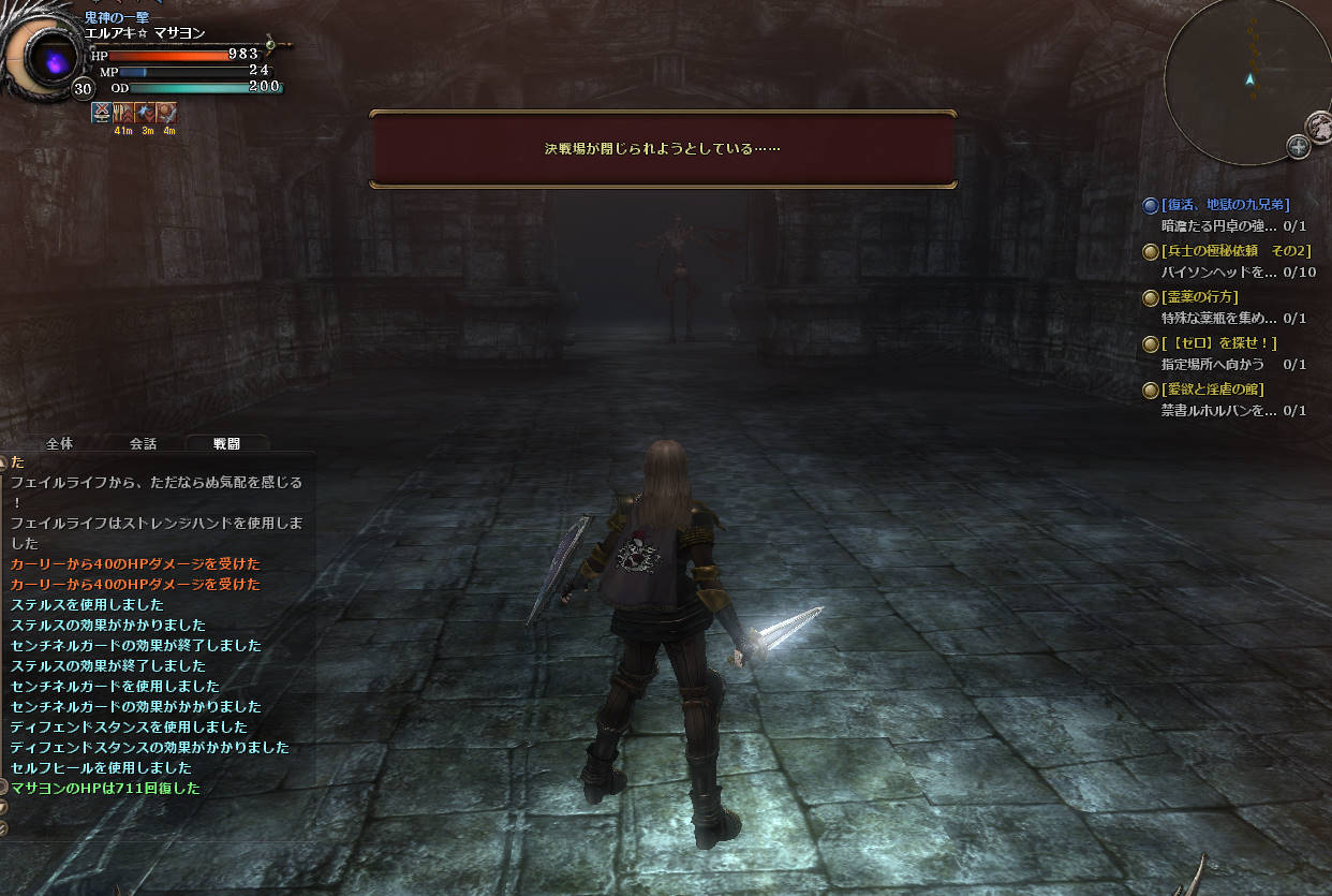 後から仲間に聞いてみると、スーパーアーマー状態になれるかどうかがポイントらしい。今の私にはその手立てが無い。どうしたものか。⇒124へ