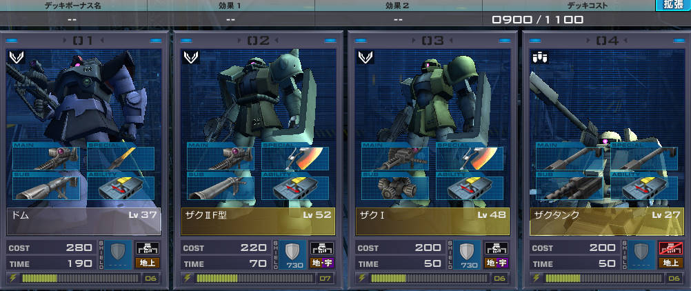 ザクIIF型は結構いいですよね。ブーストチャージが241まで伸びるので、ブーストチャージをあげておけば非常に使いやすいです。そうそう。ブーストチャージが高い機体は使いやすいということがわかった。オーバヒートしても回復が早い。ドムのブーストチャージはちょっといまいちだったりする。その辺もマイナスポイントか。