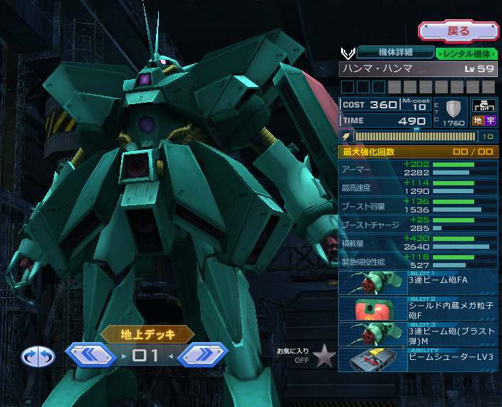 というわけで、wikiを見てみると、賛否両論渦巻いていますが、まあ、コスト相応でそれなりに面白い機体?という評価かな。面白いけど、そんなに強くはないか?