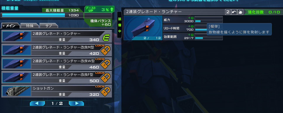 いろいろ武器を使ってみて使い心地などを調査中。さらにどの性能を上げればいいか考慮中。