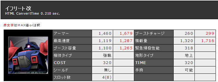 このように、イフリート改という機体は、機体性能はいいのだが、いかんせん武器が癖のあるものが多いため、能力が発揮できる場面はかなり限られてしまう機体だと思われる。注意されたし。