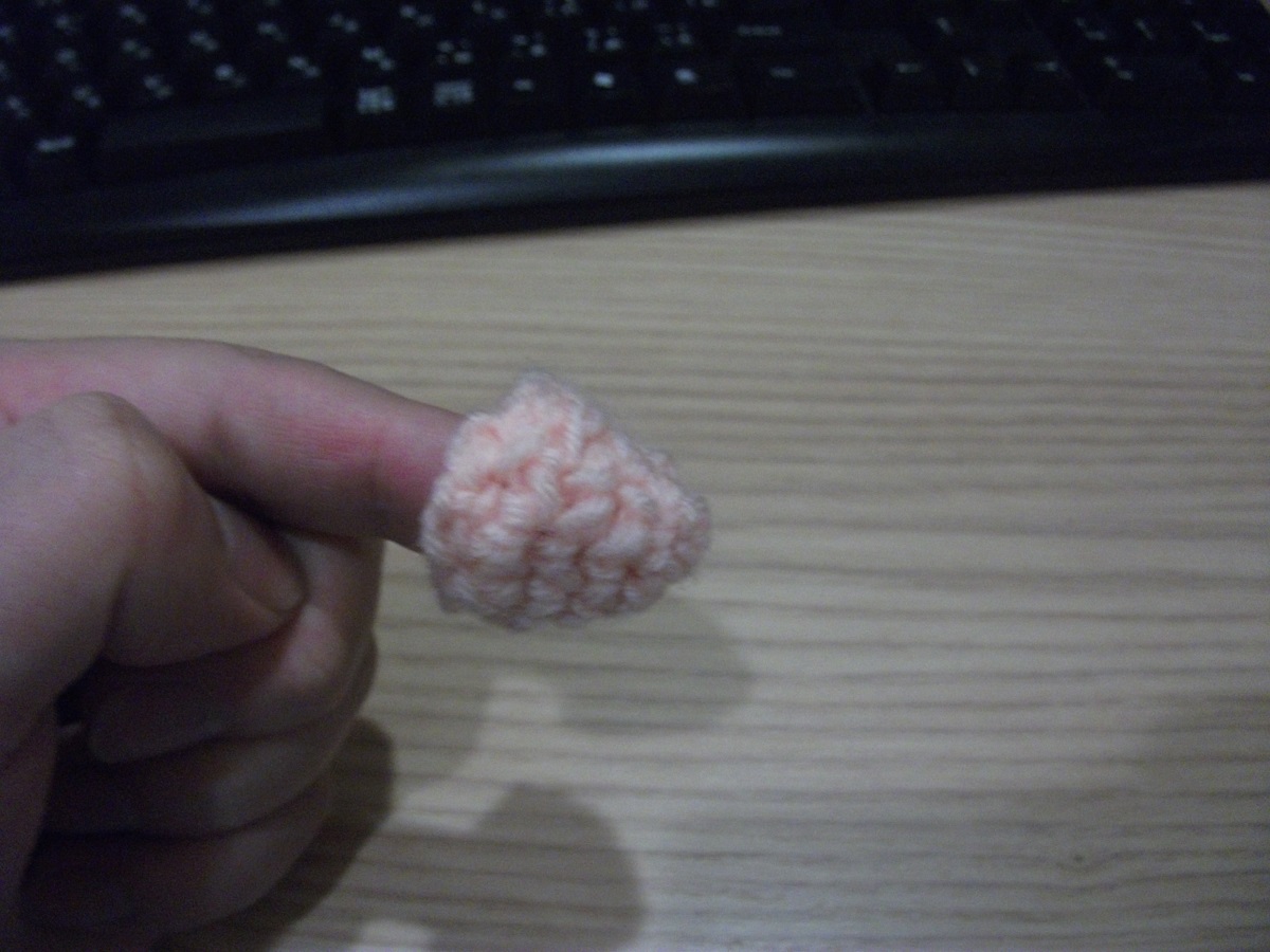 丸く平らに編むはずが、何故かこんな形に。指カバー?