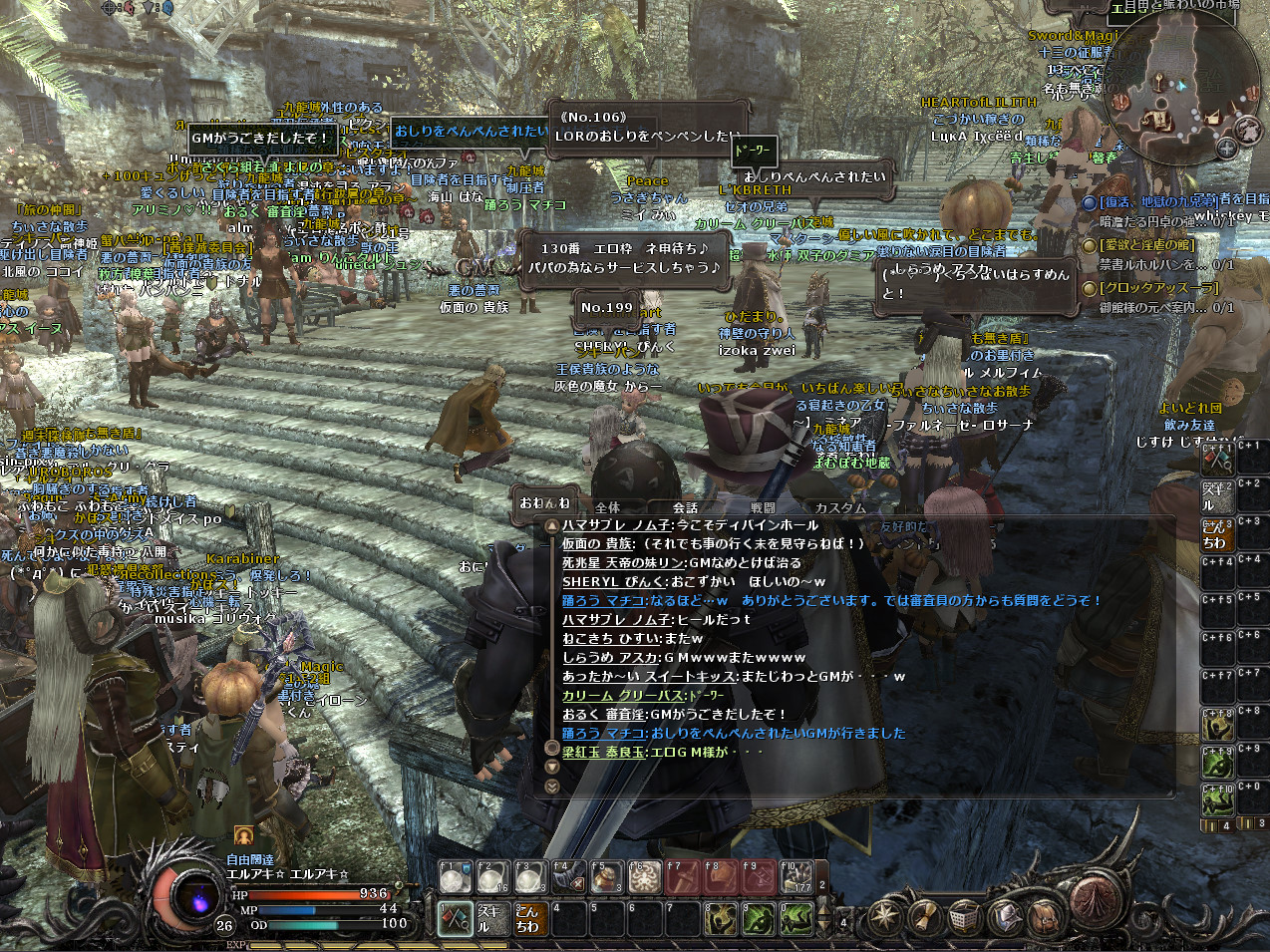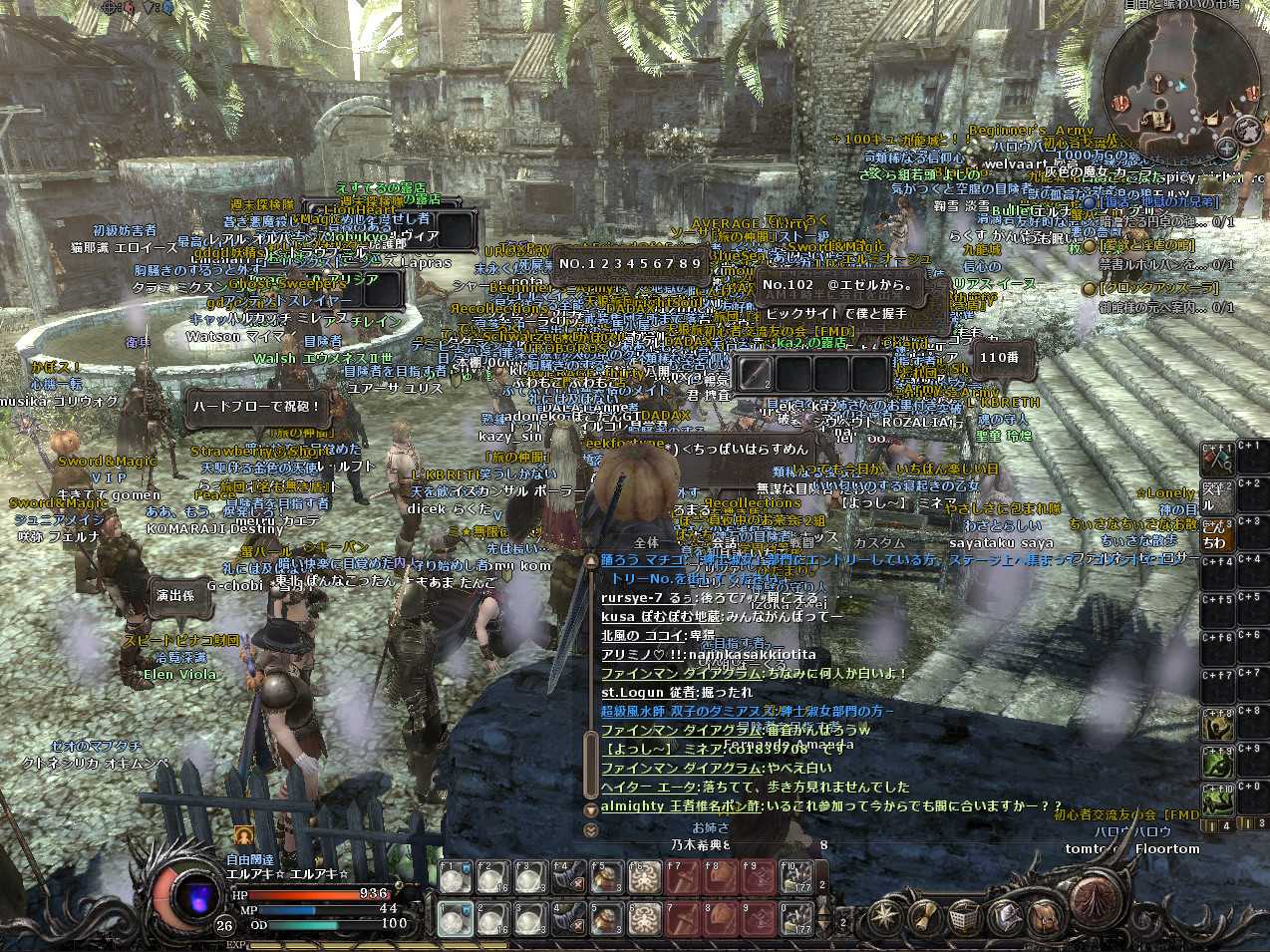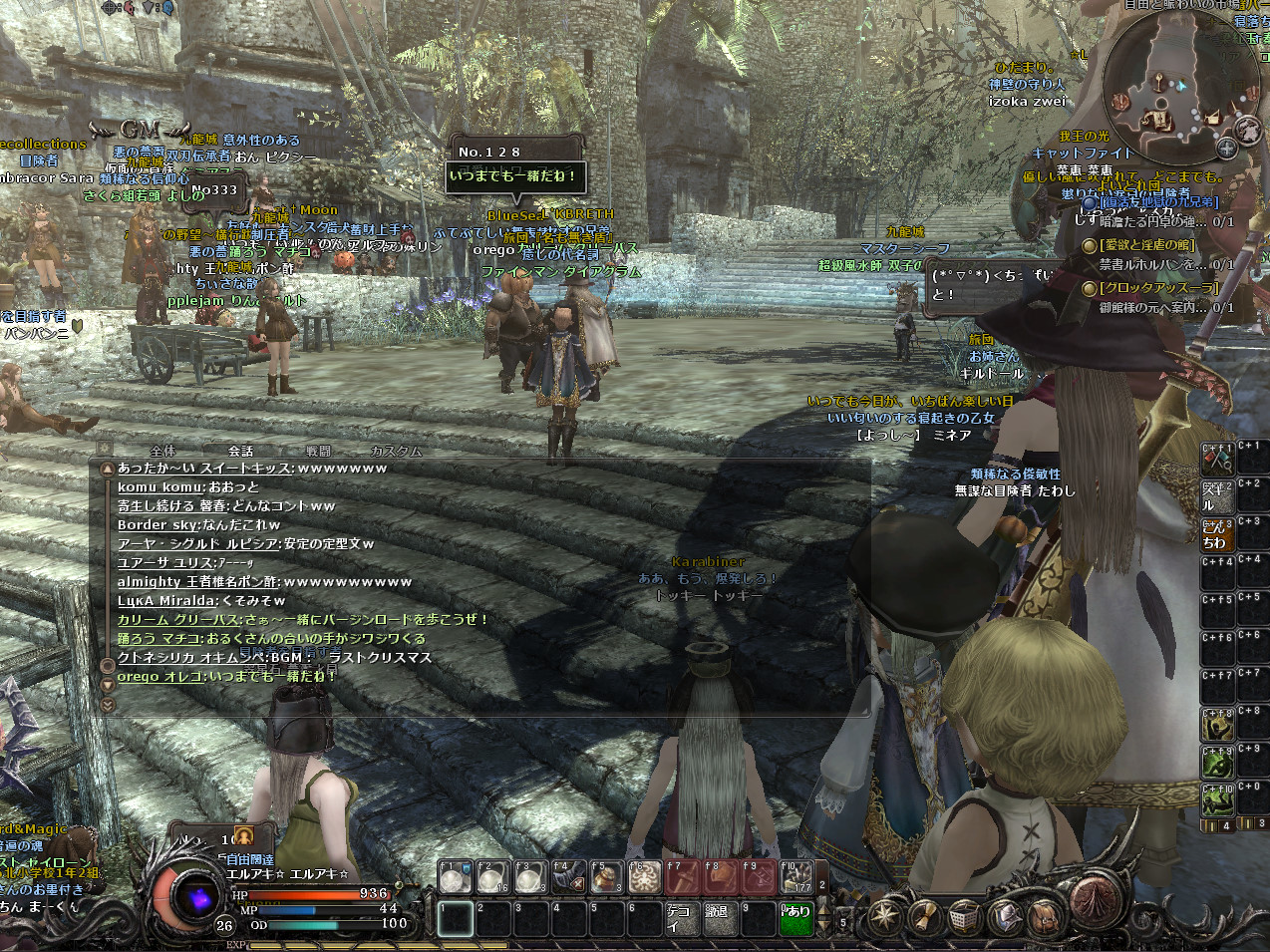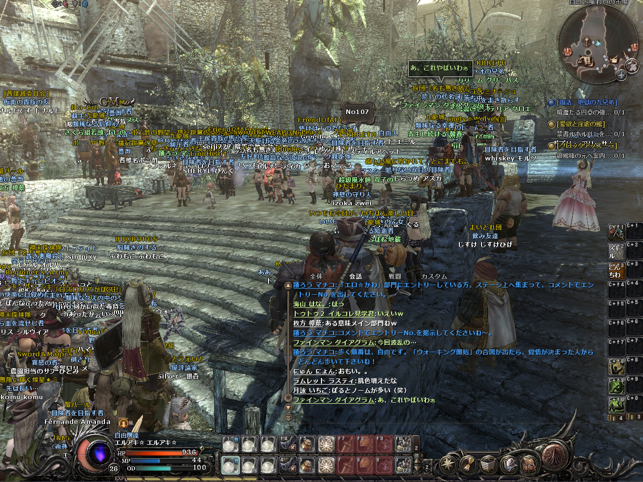 結構人が集まってイベントとしては成功でしょう。私は今年買ったばかりのパソコンなので、動きが重いということはなかったのですが、パソコンの性能がそこまで良くない人は結構重かったようです。そして、動きは大丈夫だったのですが、人が多すぎたせいか、落ちる落ちる。3回は落ちたと思います。そのたびにそこにいる人がもわもわの影に戻り、こんなかんじに