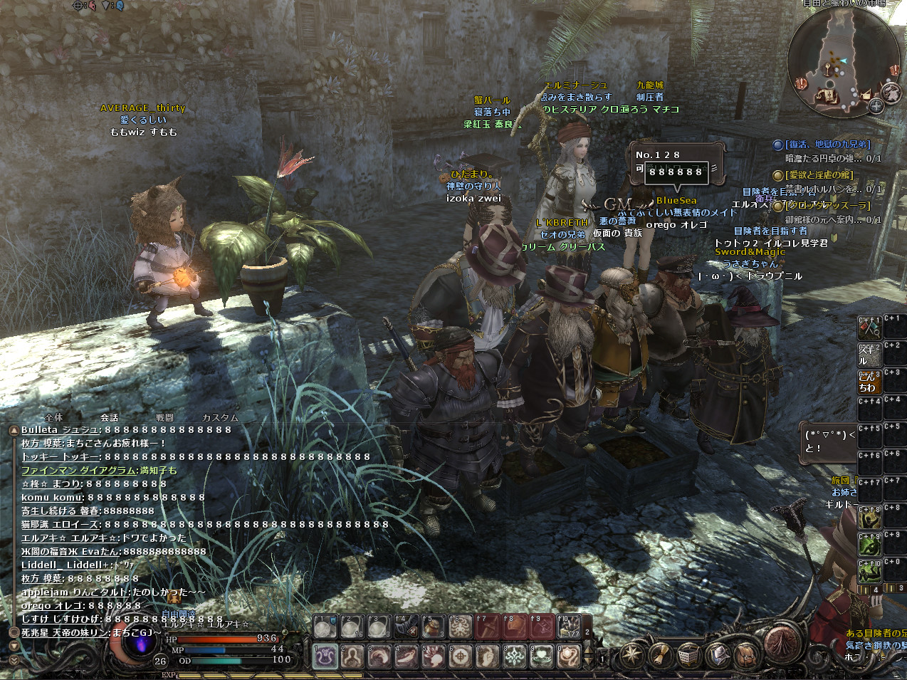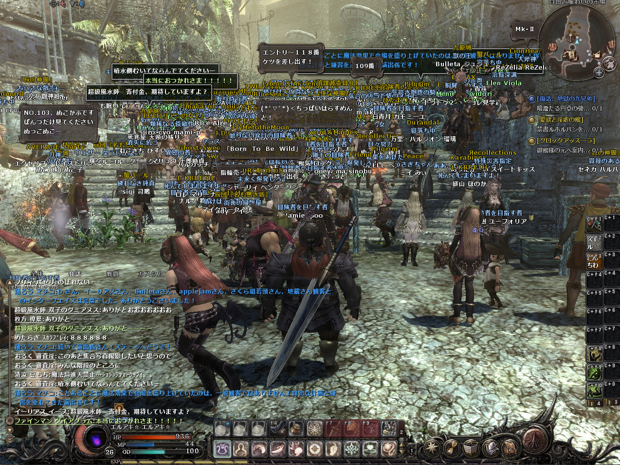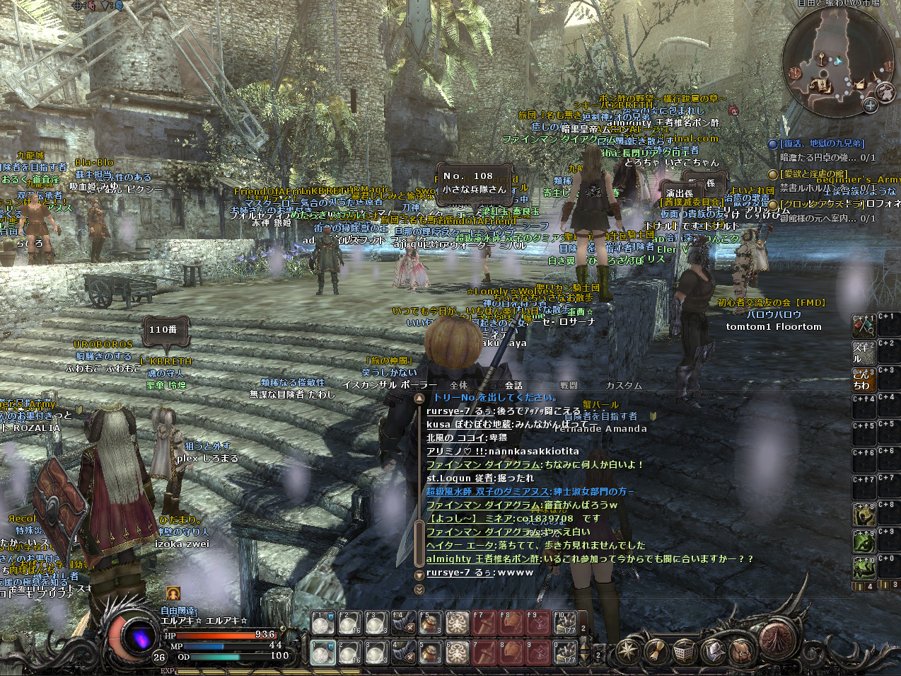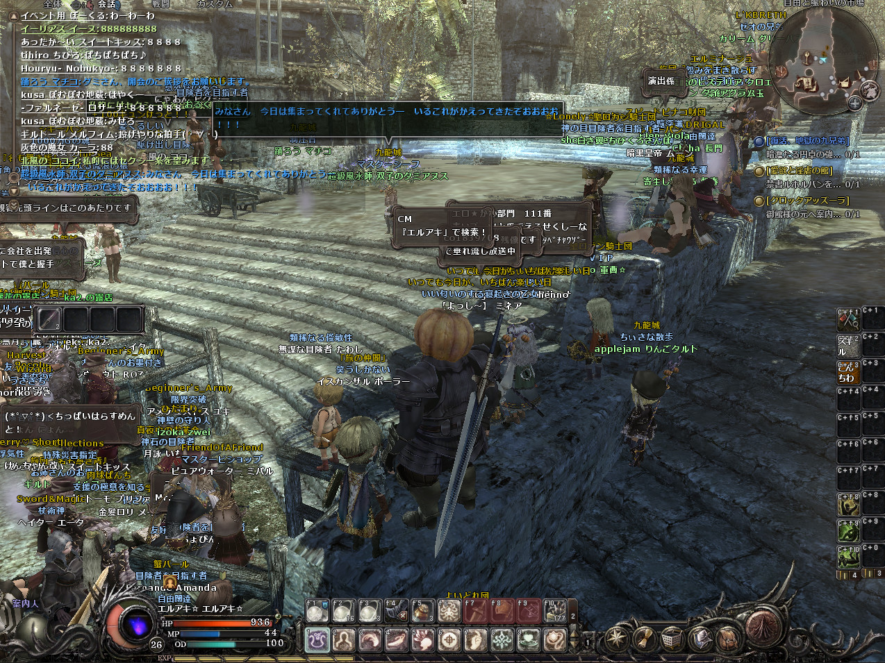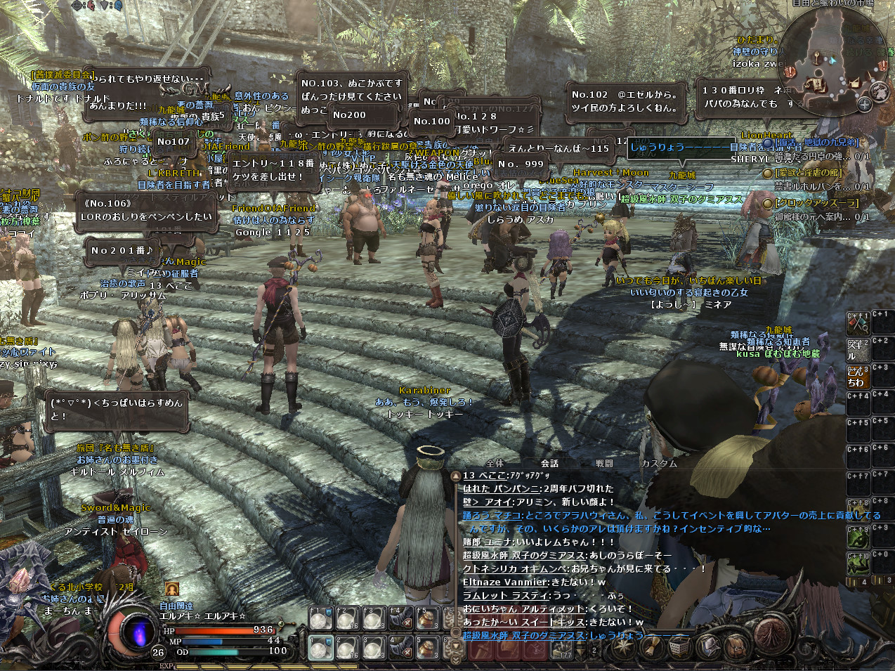 結構人が集まってイベントとしては成功でしょう。私は今年買ったばかりのパソコンなので、動きが重いということはなかったのですが、パソコンの性能がそこまで良くない人は結構重かったようです。そして、動きは大丈夫だったのですが、人が多すぎたせいか、落ちる落ちる。3回は落ちたと思います。そのたびにそこにいる人がもわもわの影に戻り、こんなかんじに