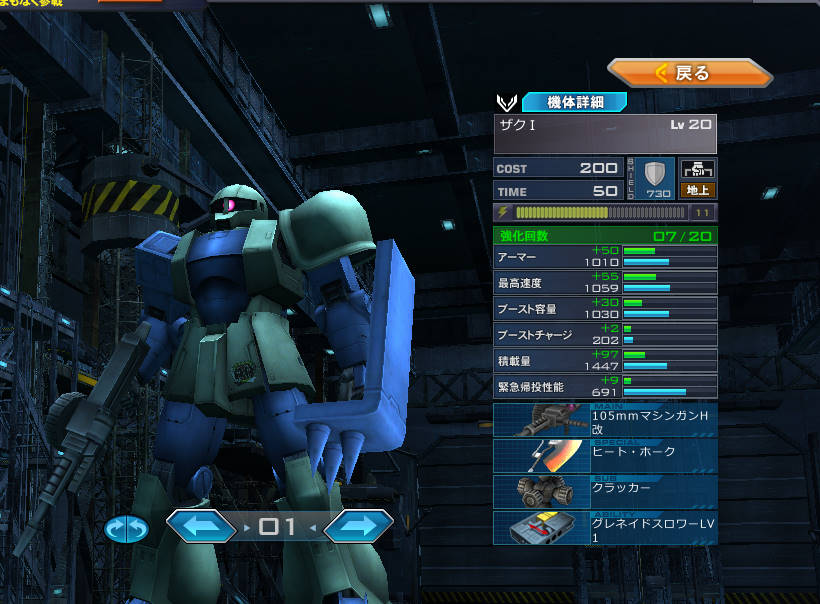 なので、新しい機体がほしい時は、DXガチャで設計図をもらえるように狙ってがんばって、機体の改造とかにGPをかけるほうがいいのではないだろうか、と思っております。そうそう、GPは機体を強化するためのポイントなのだ。