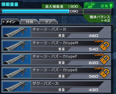 ところで、このゲーム、機体の武器、アイテムなどいろいろあるのですが・・・かなりマニアックなつくりになってます。これ作った人、ガンダム相当好きな人なんでしょうか?ジャイアントバズTYPEB、ジャイアントバズTYPER等等、武器一つとってもかなり細かいです。