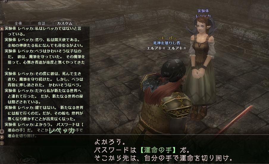 他のNPCからいろいろ情報を聞いた後、レベッカに対して正しい順序で質問すると、パスワードを教えてもらえます。これで次の決戦場に入れます。