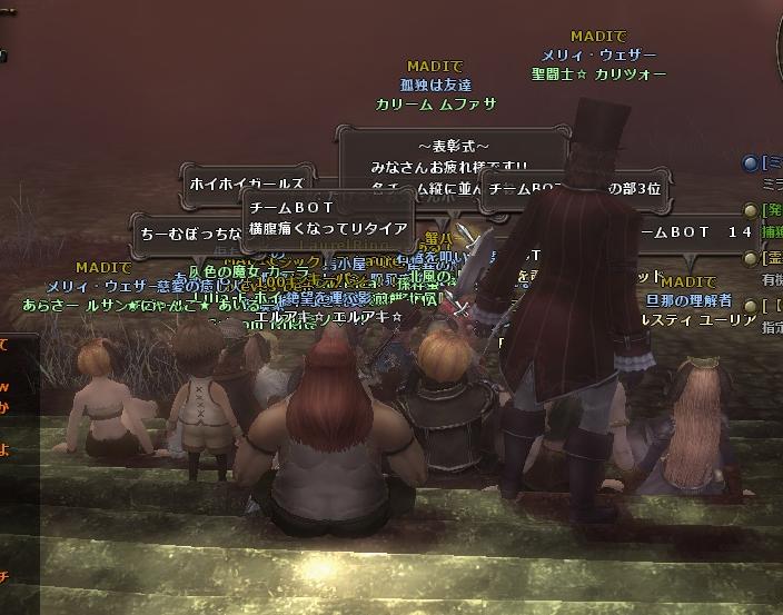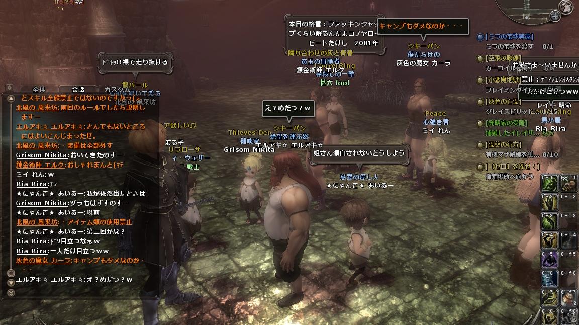 私はアバターももっておらず、汗臭いシャツを着ていたので、遠慮して後ろのほうで。ノームのブラはいいが、ドワーフのシャツはいやすぎる(笑)
