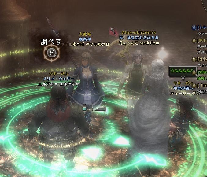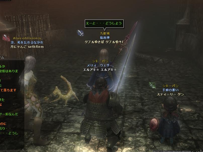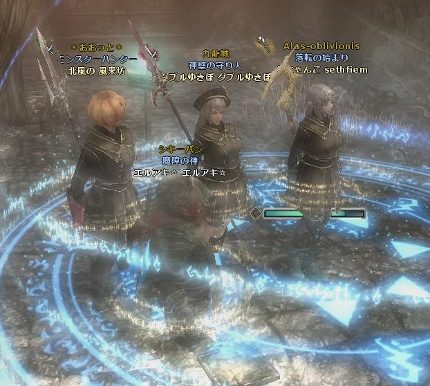 昨日降偉の祭儀場跡の攻略に行ってきました。パーティメンバーはエルアキ☆、ダブルゆきぽ(ゆきねえ)、月にゃんこ(月にゃん)、スティーリー(ダン君)。