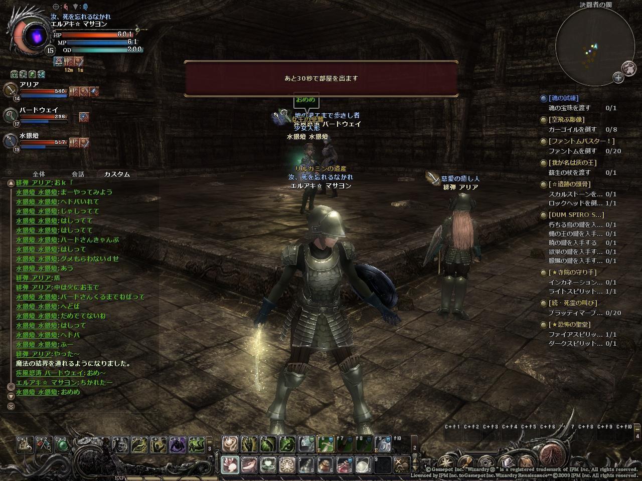 攻略楽しいっっていうより、疲れたーっという感じ。疲労感しかない。この時点で「もう駄目だな」と思う。ウィザードリィオンラインで面白いのは初見ダンジョンをネタばれ無しでクリアーすることだ、といわれていますが、今回リドルを考えるのが面倒だった(メモすればいいことなんだけど、メモしても、ある程度覚えとかないとリドルは解けない)のと、もう寺院はとっととクリアーしていいレベルだったので、wikiなどを見ながら攻略。初見ダンジョンで地図もなかったのでどこを歩いているのやらわからない状態ではありましたが、何とかクリアーできました。(既にクリアーした人がいたため。)あーちかれた。そして足引っ張ったなー。かなりの駄目駄目加減でした。一緒に行った人すまなかったねー(´;ω;`)