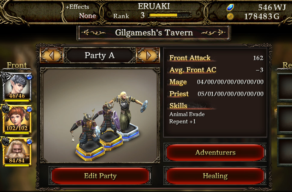 3人で行けばもらえる経験値が2倍。さらに消費される聖水(食料みたいなもの)も半分。これで聖水問題もなし。うーんなるほど。