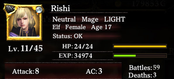なんておもってRishiを転職させるか考えてみたら・・・あら?この子転職できない!何だこの子。実はこのキャラ、名前の変更も出来ないので、ちょっと特別なキャラなのかもしれません。うわー。転職できないんじゃ先がないなぁ。