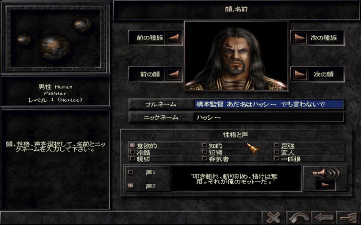 こちらで新規にキャラクターを作って名前を入力してみました。