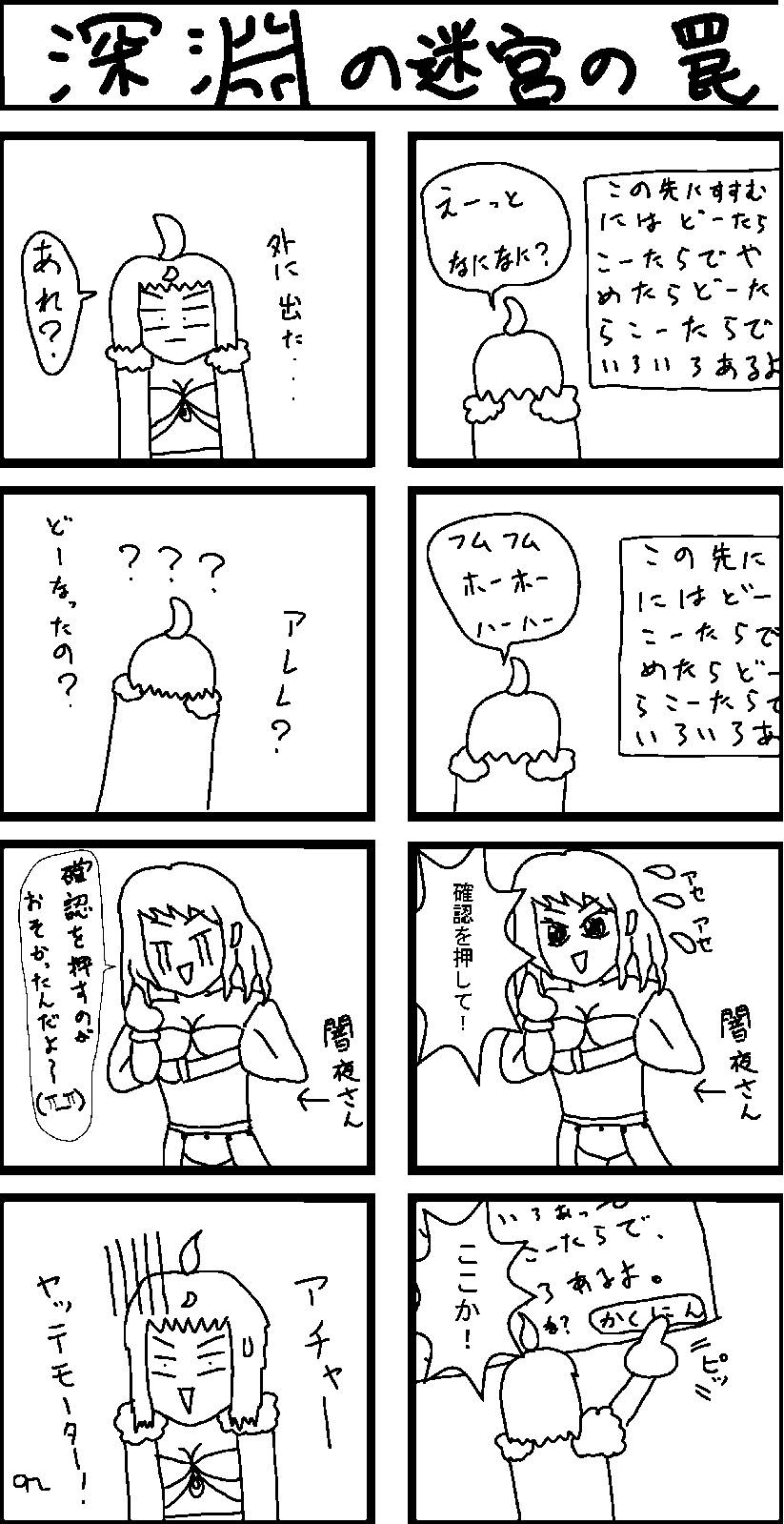闇夜さんが深淵の迷宮に連れて行ってくれるというのです!なんと貴重な体験。いつもアイテム貰ってばかりで、さらに深淵の迷宮にも連れて行ってくれるとは!なんていい人だ!感謝感激雨霰。闇夜さんに足を向けて寝れませんね!(どっちの方向かわかんないけど(笑))