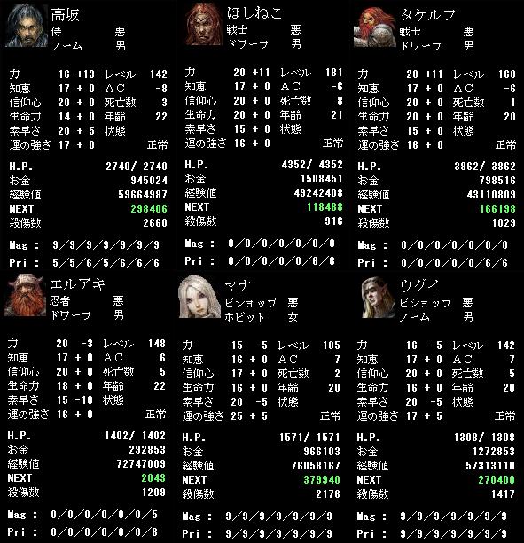 最後に裏ボスを倒した時のパーティの状態を表示。