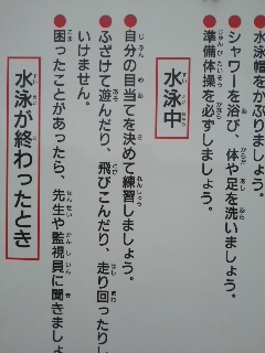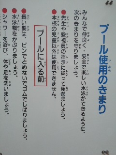 隣にプールがありまして、プール使用の決まりが書いてあったので、何気に見てみたんですよ。