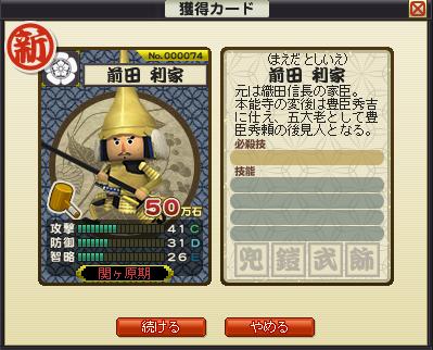 あと、戦うと武将がレベルアップします。前田慶次がレベルアップしたけど、、、攻撃力が1上がったのかな?
