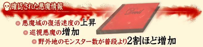 このイベントの前まで悪魔城なんて見向きもしませんでした。悪魔城を攻めるよりも森とかにいる敵を倒した方が遥かに楽。たまに悪魔城を攻めたりしますが、たいした実入りも無くてショボーン(´・ω・`)な感じ。