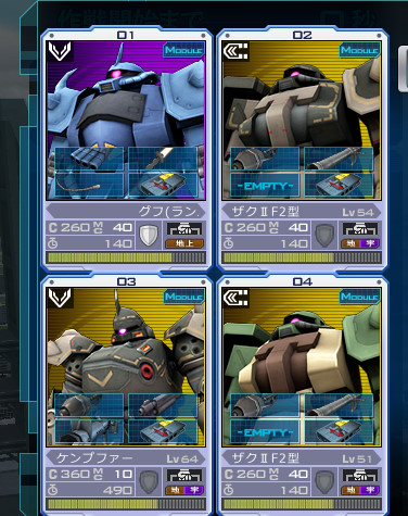 BA無いところでも練度上げるためにランバグフを入れていますが、連射式フィンガーバルカンが強かったり、拠点での回復が便利だったりして、これ、普通のグフよりいいんじゃないの?w