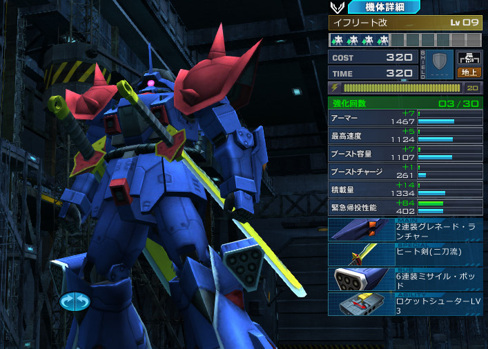 このように、イフリート改という機体は、機体性能はいいのだが、いかんせん武器が癖のあるものが多いため、能力が発揮できる場面はかなり限られてしまう機体だと思われる。注意されたし。