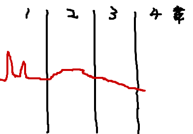 各章の難易度を赤線であらわすとこのような感じ。(個人的意見)